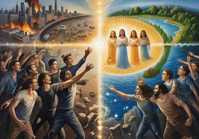 Более того, очень важно принять концепцию Единства и единства со всем сущим. Иллюзия процветает на разделении — разделении между политикой, между религиями, между идеями и идентичностями, между отдельными людьми. Это разделение — архонический сценарий, удерживающий человечество в ловушке раздора. Но когда вы соприкасаетесь с Единством, вы растворяете барьеры, воздвигнутые иллюзорным миром. Вы начинаете видеть свое отражение в других, испытываете эмпатию и понимаете, что каждое существо, по сути, связано и является частью одного и того же Божественного Света.